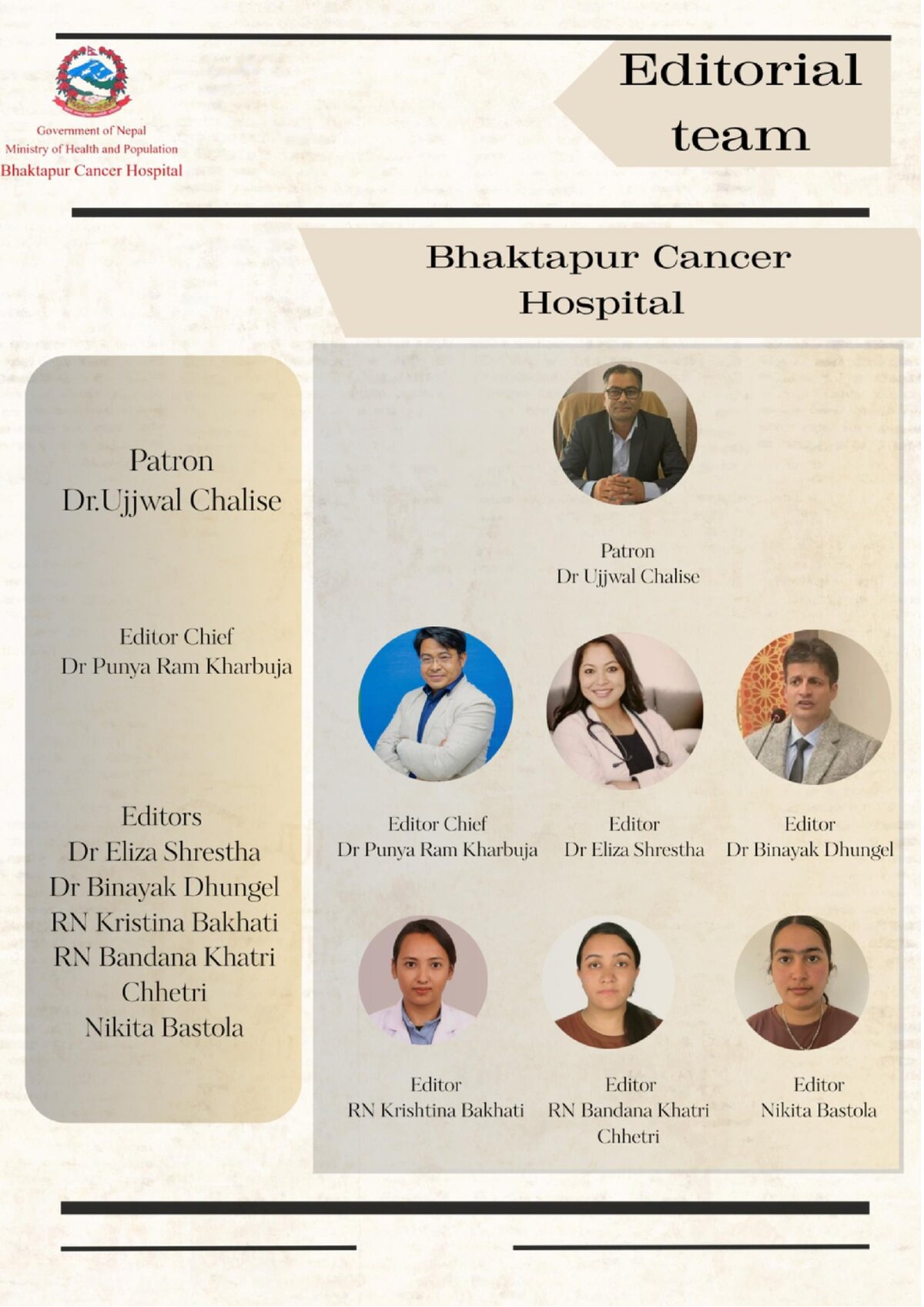 नेपाल सरकार, स्वास्थ्य तथा जनसंख्या मन्त्रालय, भक्तपुर नगरपालिका, राष्ट्रिय तथा अन्तर्राष्ट्रिय रोटरी क्लव, नेपाल अर्बुद रोग निवारण संस्था तथा विभिन्न सामाजिक संघ संस्थाहरुको सहकार्यमा वि.स. २०५१ सालमा यस सामुदायिक अस्पतालको रुपमा स्थापना भई नेपाल भरिका क्यान्सर बिरामीहरुलाई स्तरीय उपचार प्रदान गर्दै आइरहेको सन्दर्भमा विषम परिस्थिति सृजना भई स्वास्थ्य तथा जनसंख्या मन्त्रालयको प्रस्तावमा मिति २०७७ कार्तिक २४ गते बसेको मन्त्रिपरिषद्को बैठकले भक्तपुर क्यान्सर अस्पताल विकास समिति गठन आदेश २०७७ स्वीकृत गरि स्वास्थ्य तथा जनसंख्या मन्त्रालय मातहत्त १२३ बेडबाट सेवा संचालन भइरहेको छ ।