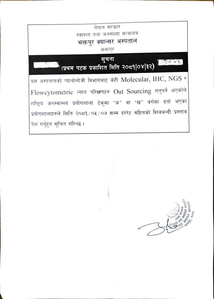 - ल्याव परिक्षणहरुको Out Sourcing गर्ने सूचना ।